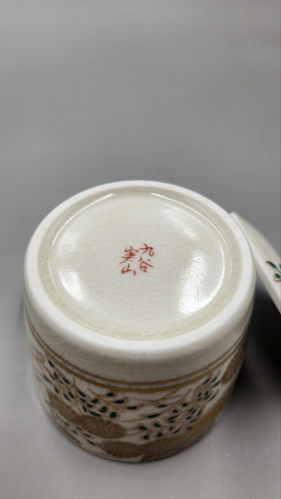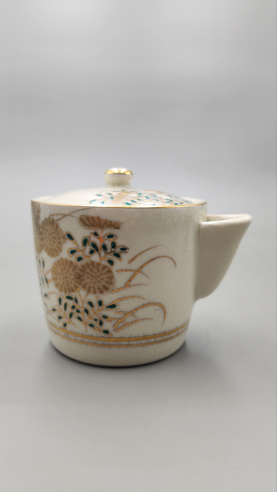 국화로 보이는 식물 문양이 금채와 청녹색 안료로 채색되어 있어